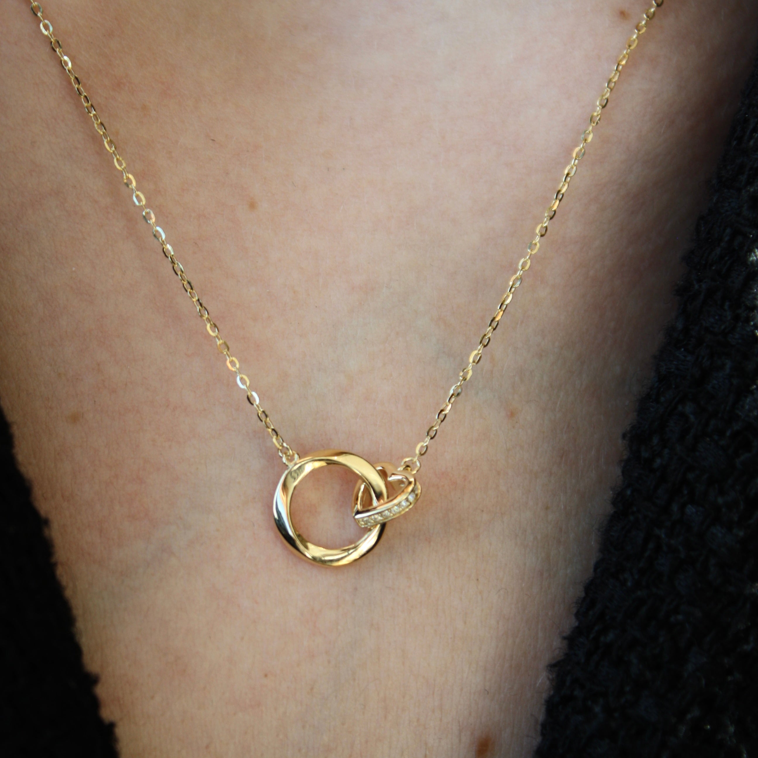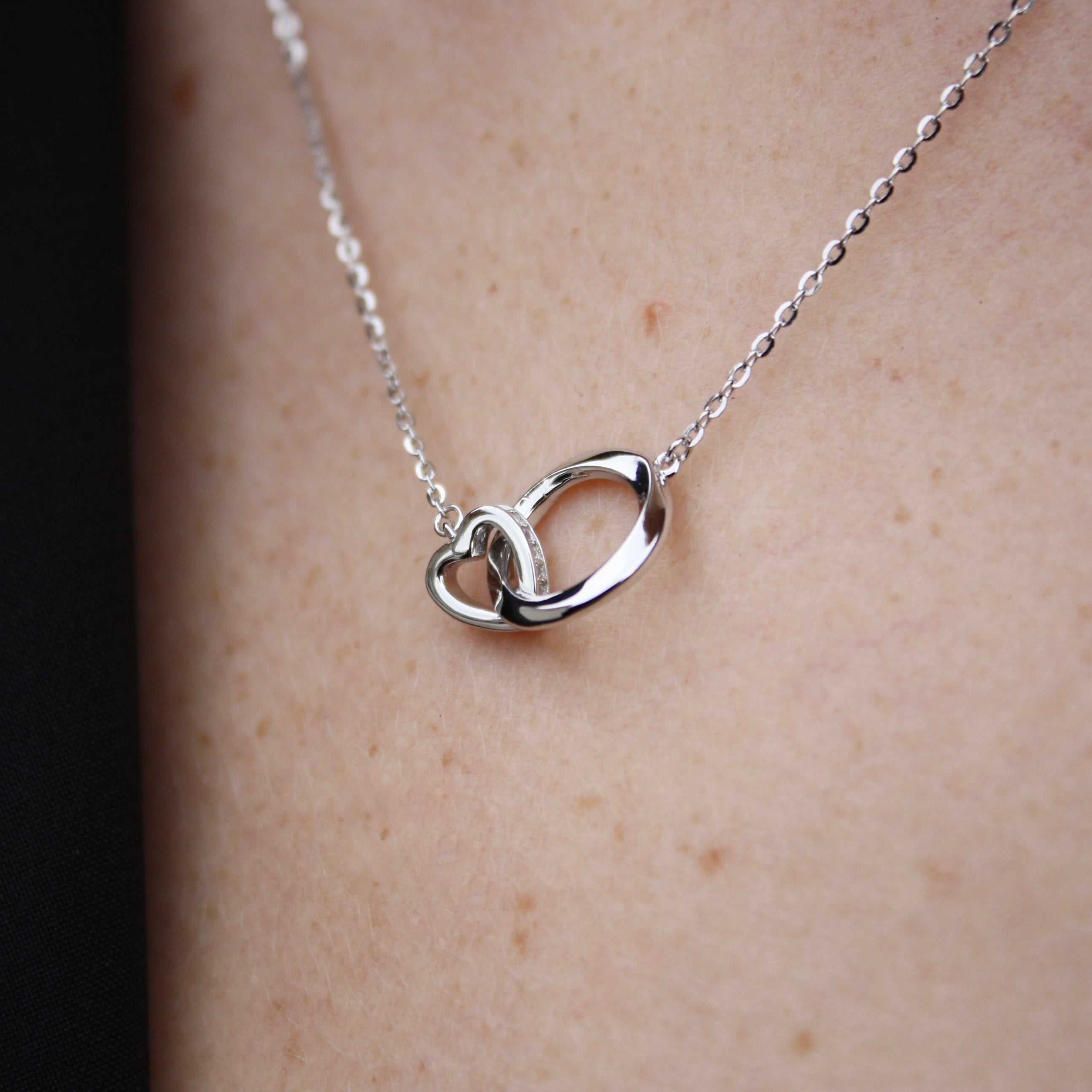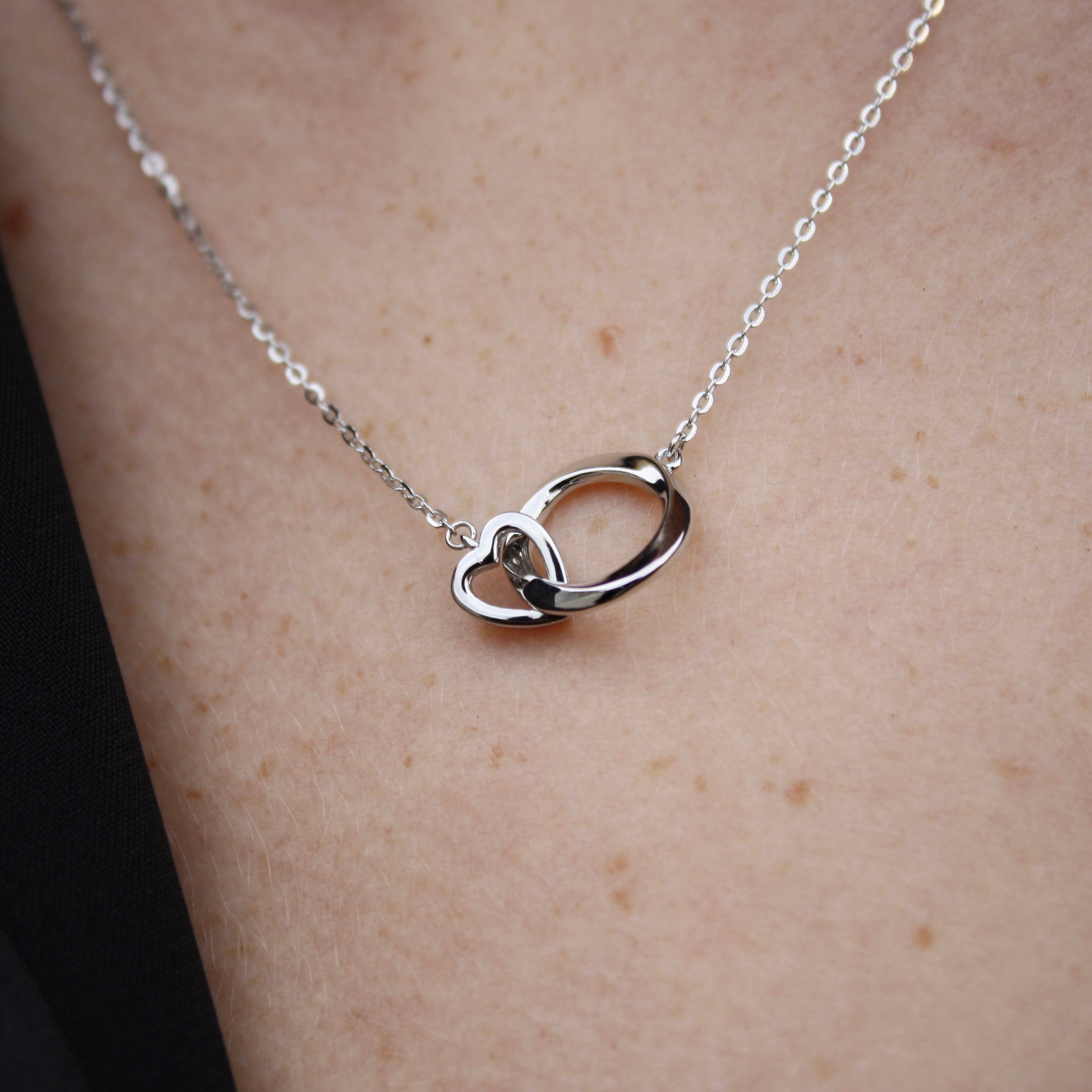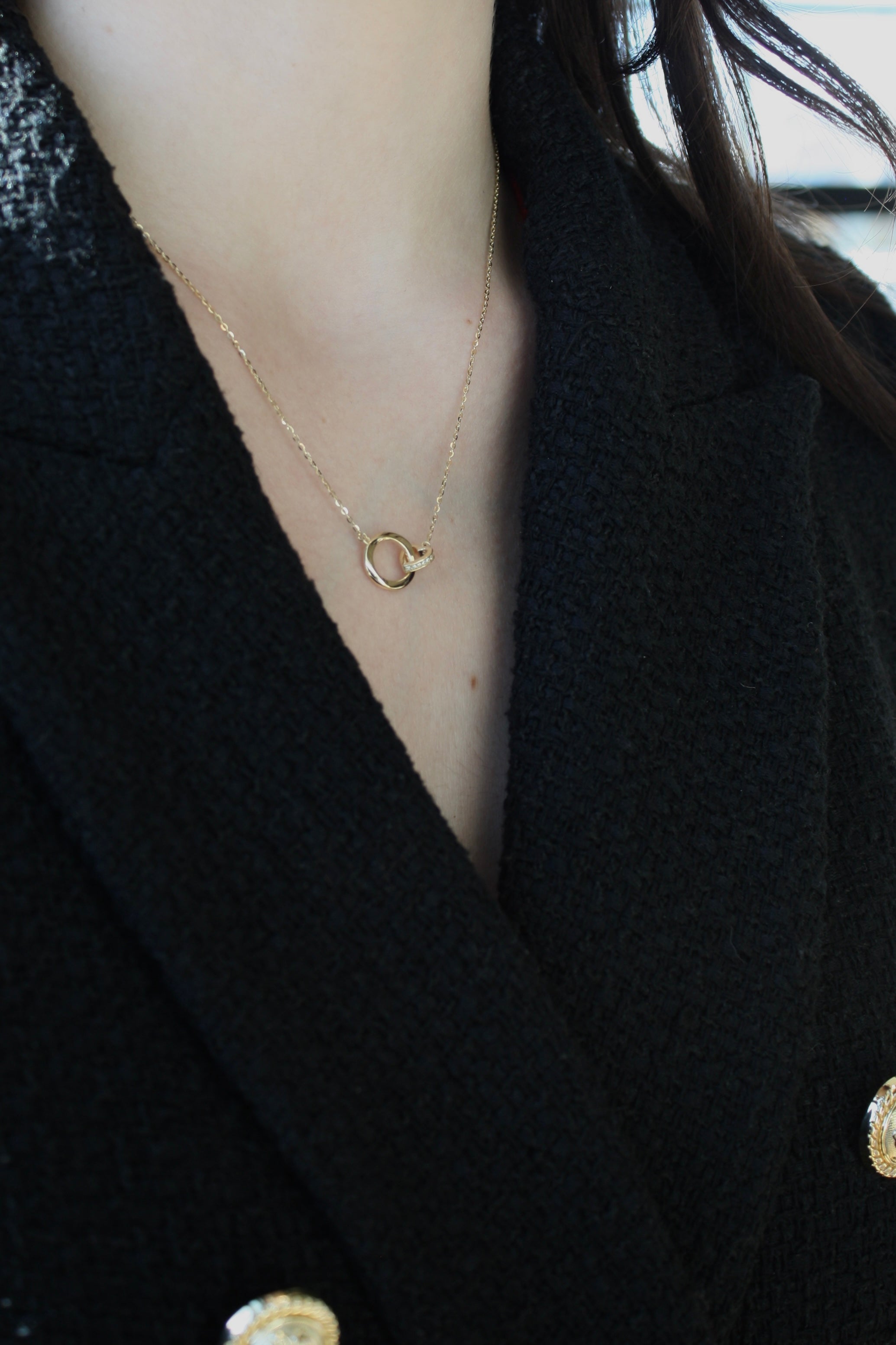 The perfect gift to emphasize your everlasting love, the Heart Ring Necklace. Delicately crafted with zircon crystals laid in sterling silver and gold vermeil. Radiate grace with this subtle necklace.
