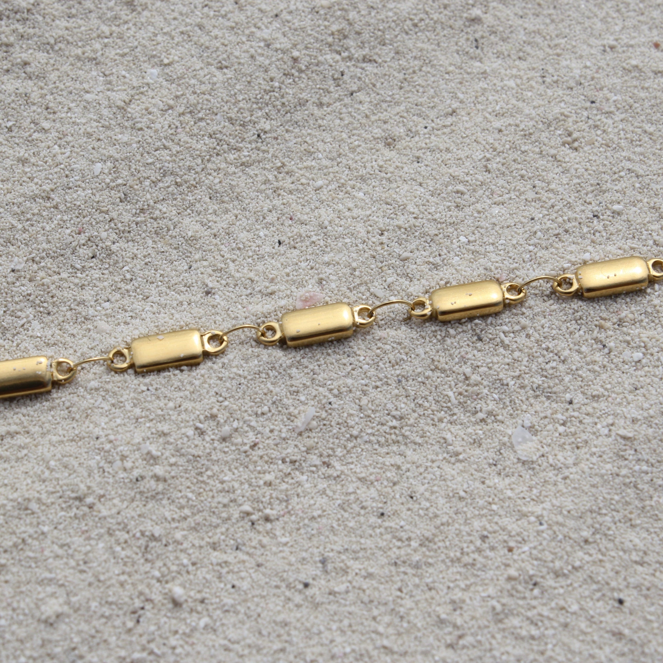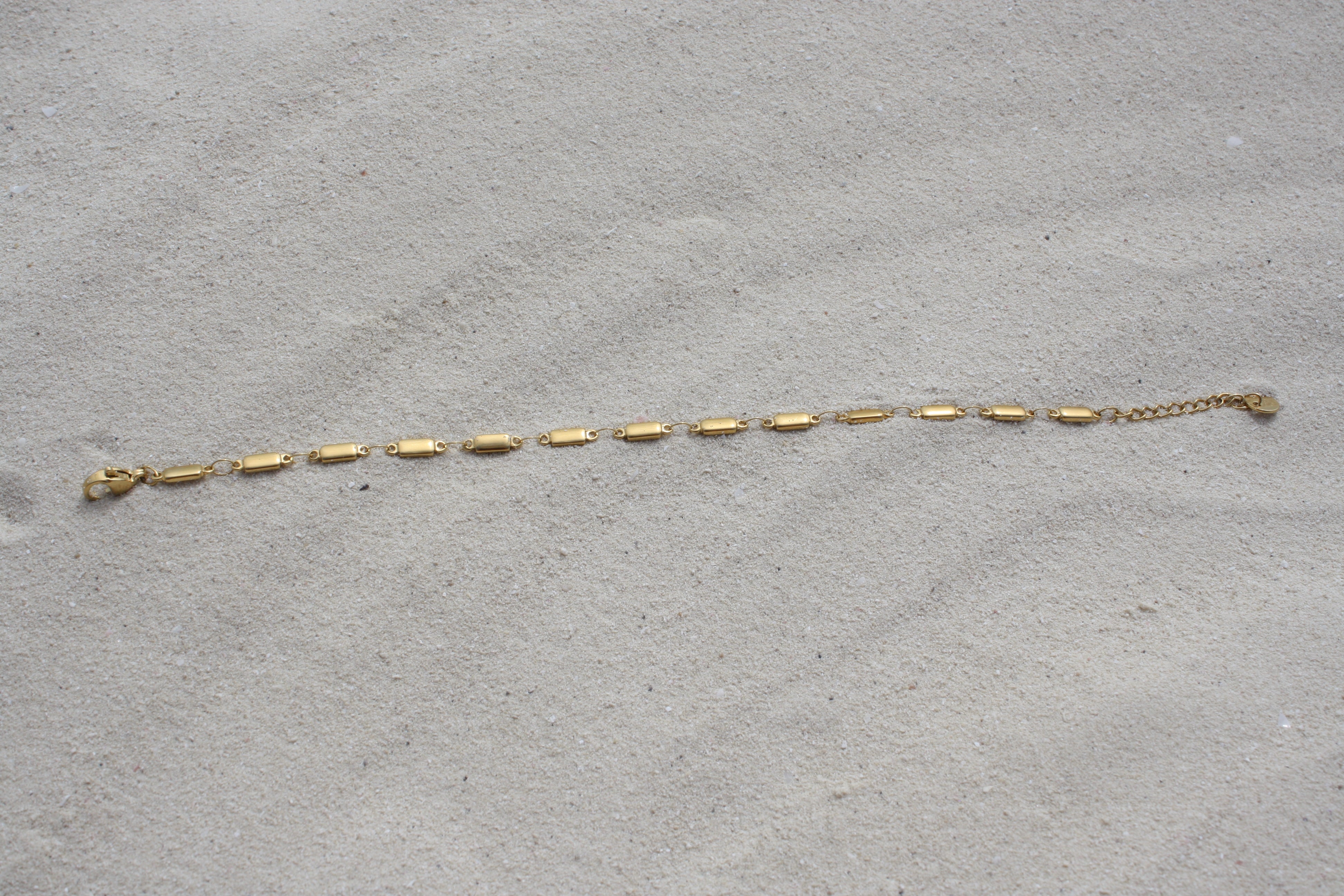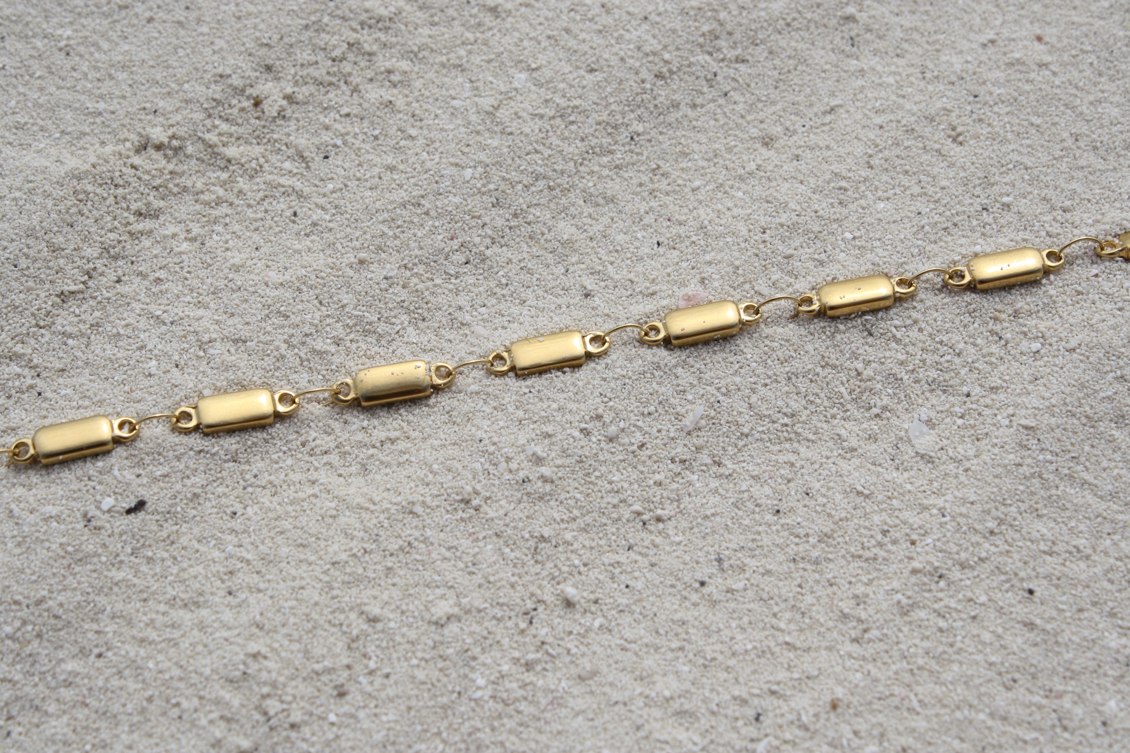 This sleek bracelet combines the solid look of a bangle and a chain link bracelet. It’s smooth shiny look adds the perfect touch of elegance to any look.