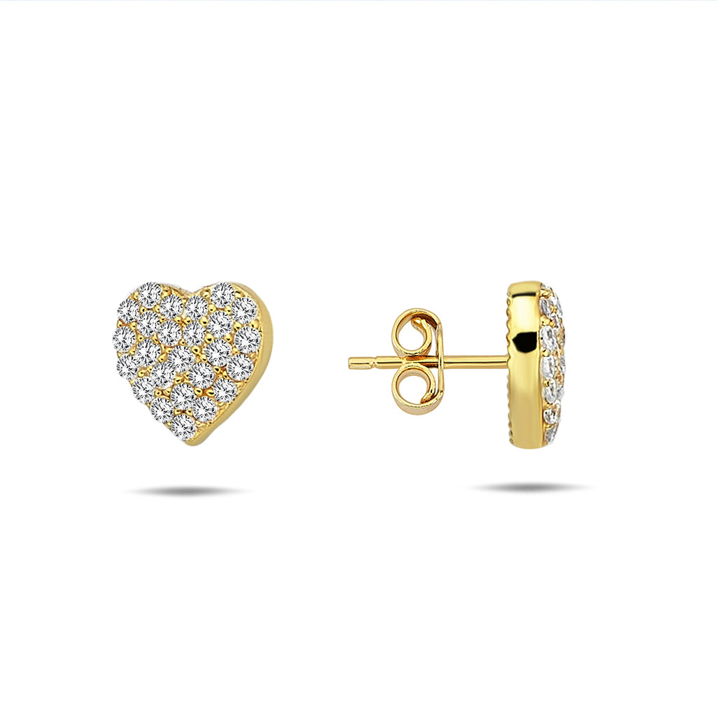 Delicate heart-shaped studs crafted in solid 14K gold with pavé detailing that catches light beautifully. Waterproof and tarnish-resistant, these earrings maintain their lustrous finish through daily wear. A refined choice for layering or standalone elegance, suitable across all ages and occasions.