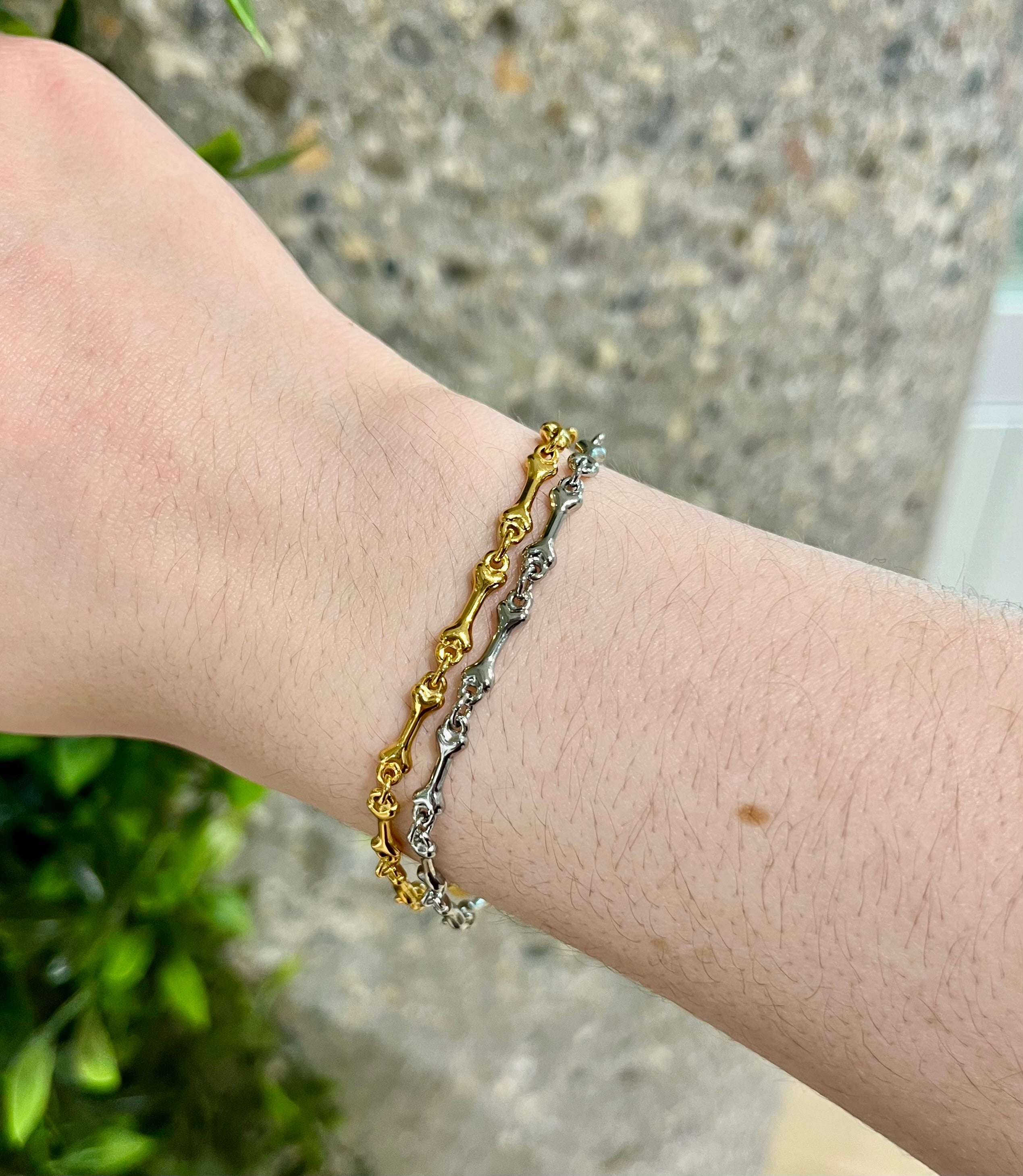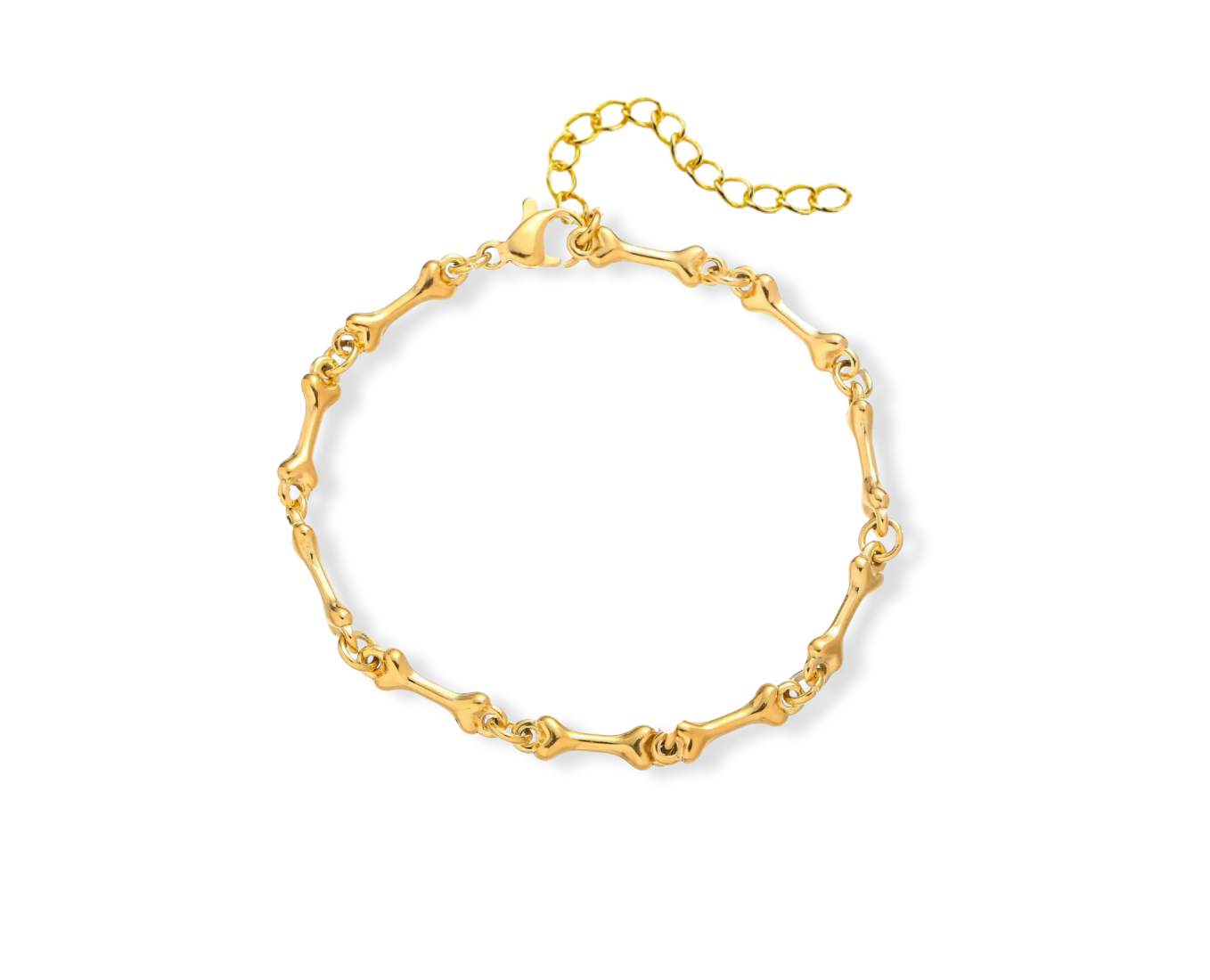 Elevate any look with this modern and unique bone link bracelet. Crafted with durable stainless steel and coated in 24k gold, this bone bracelet is a stylish addition to any outfit. Enhance your wardrobe with the sleek and contemporary design of this unique link bracelet.