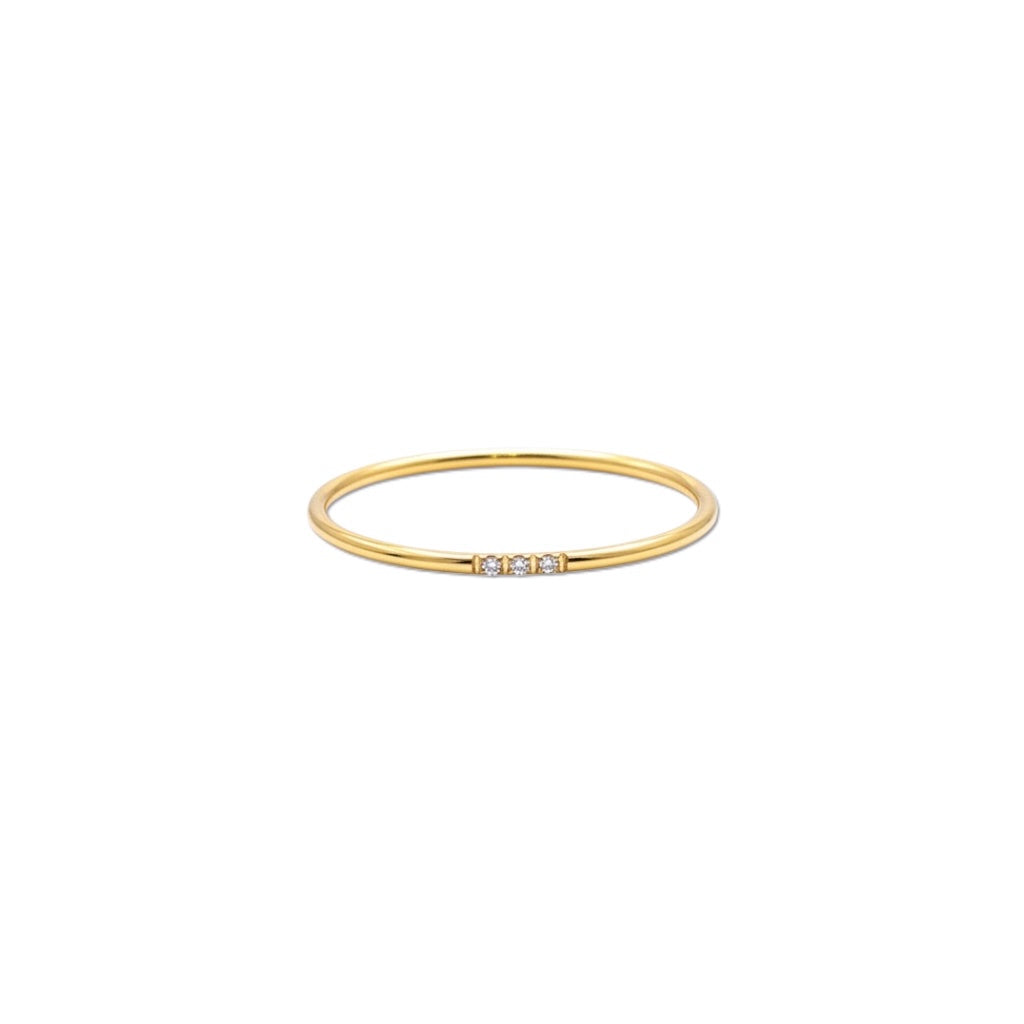 Delicate stacking ring featuring three petite crystals set along a slender band. Perfect for layering with other rings to create a personalized, multidimensional look. The refined minimalist design complements both everyday wear and special occasions.