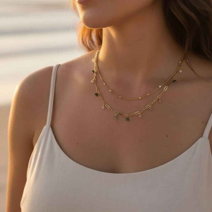 This elegant beaded necklace for women is perfect for layering. With a stunning gold finish, it adds a touch of sophistication to any outfit. Its unique design is versatile and can be styled with various looks. Make a statement with this timeless accessory.