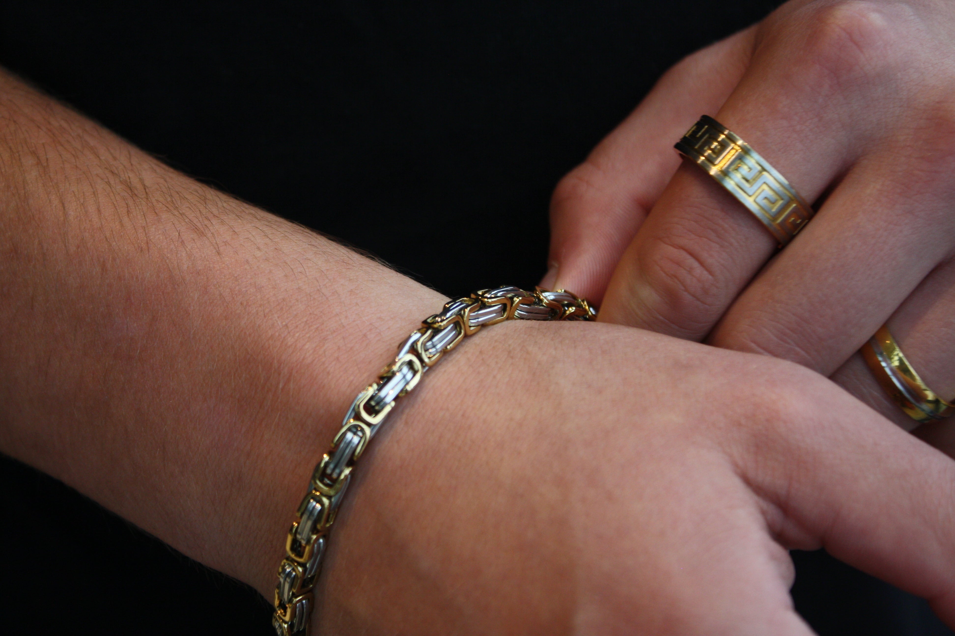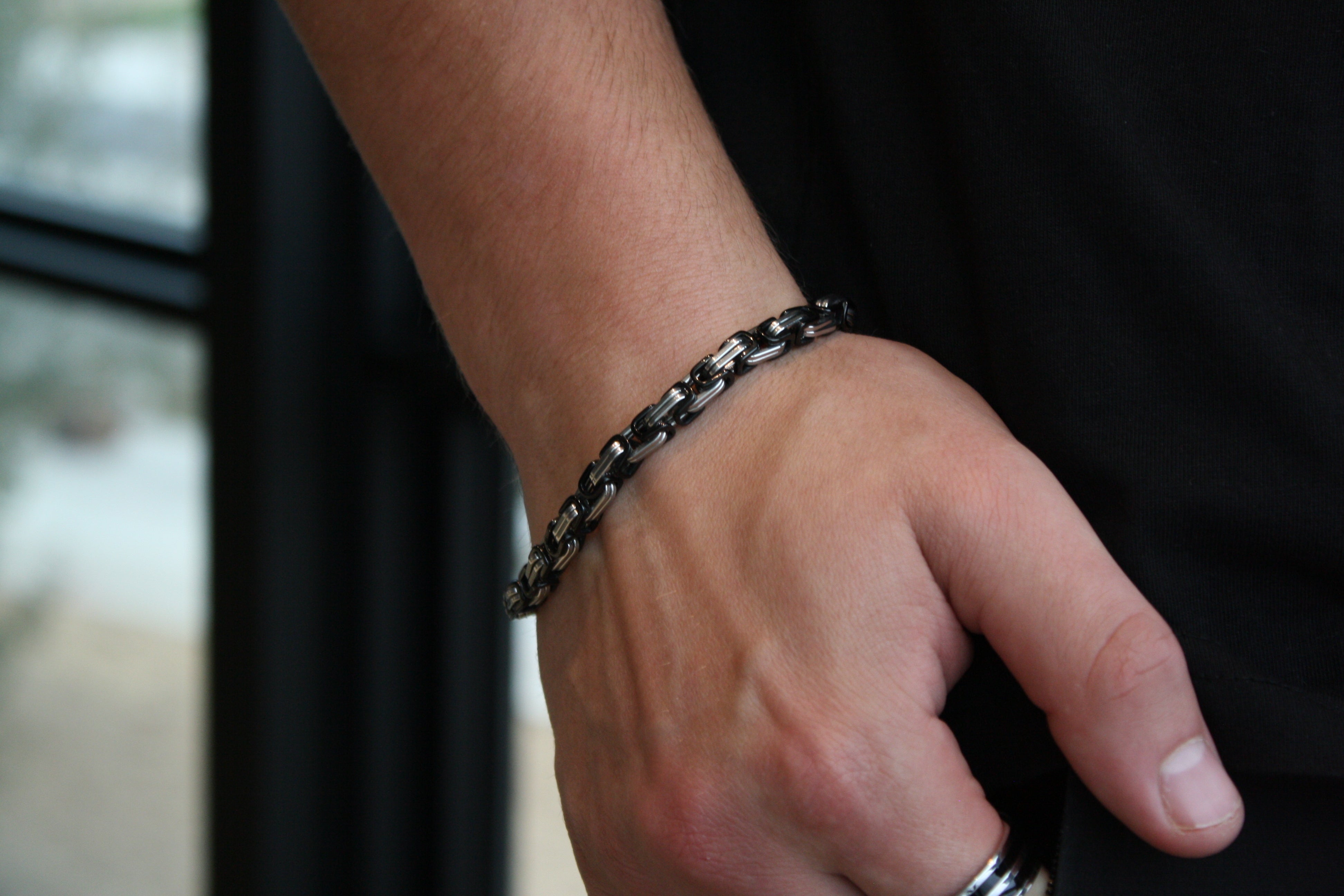 The distinctive Byzantine link chain ensures exceptional craftsmanship and durability. This bracelet offers a strong, masculine accent that complements any outfit. Its intricate design provides enhanced strength, making it ideal for extended use.