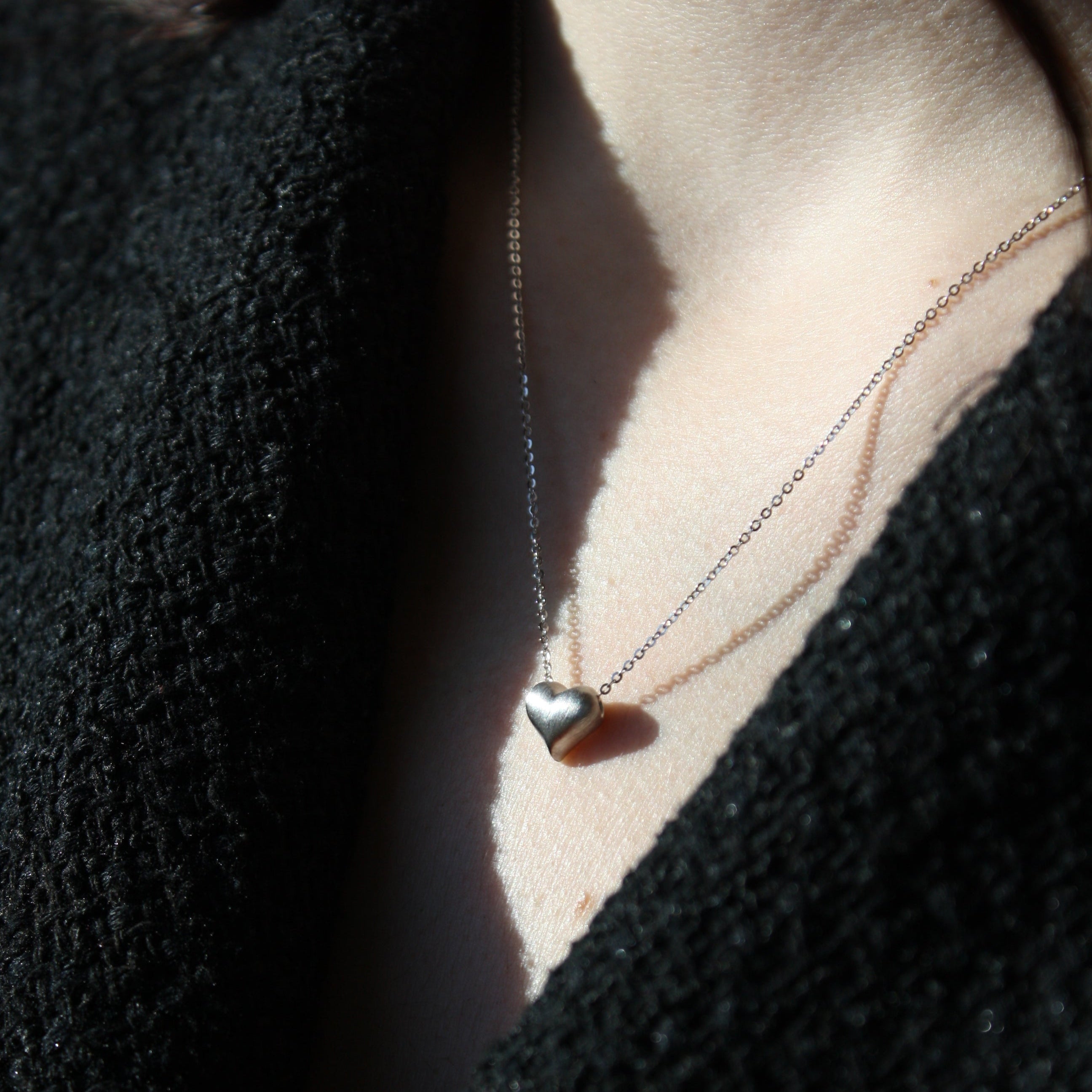 A versatile and stylish piece for any outfit or occasion. Made of high-quality, waterproof sterling silver, this puffy heart necklace is both lightweight and trendy. Elevate your wardrobe with this must-have accessory.