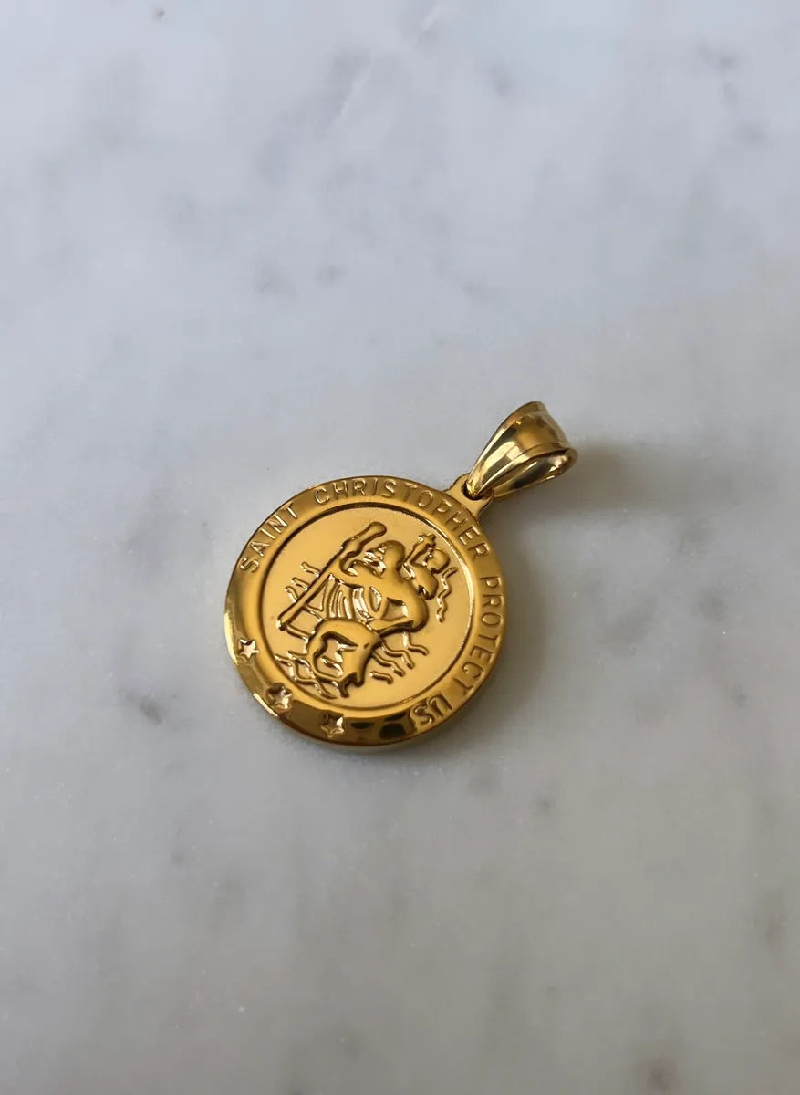 The St. Christopher pendant. A symbol of protection, faith and safe travels.