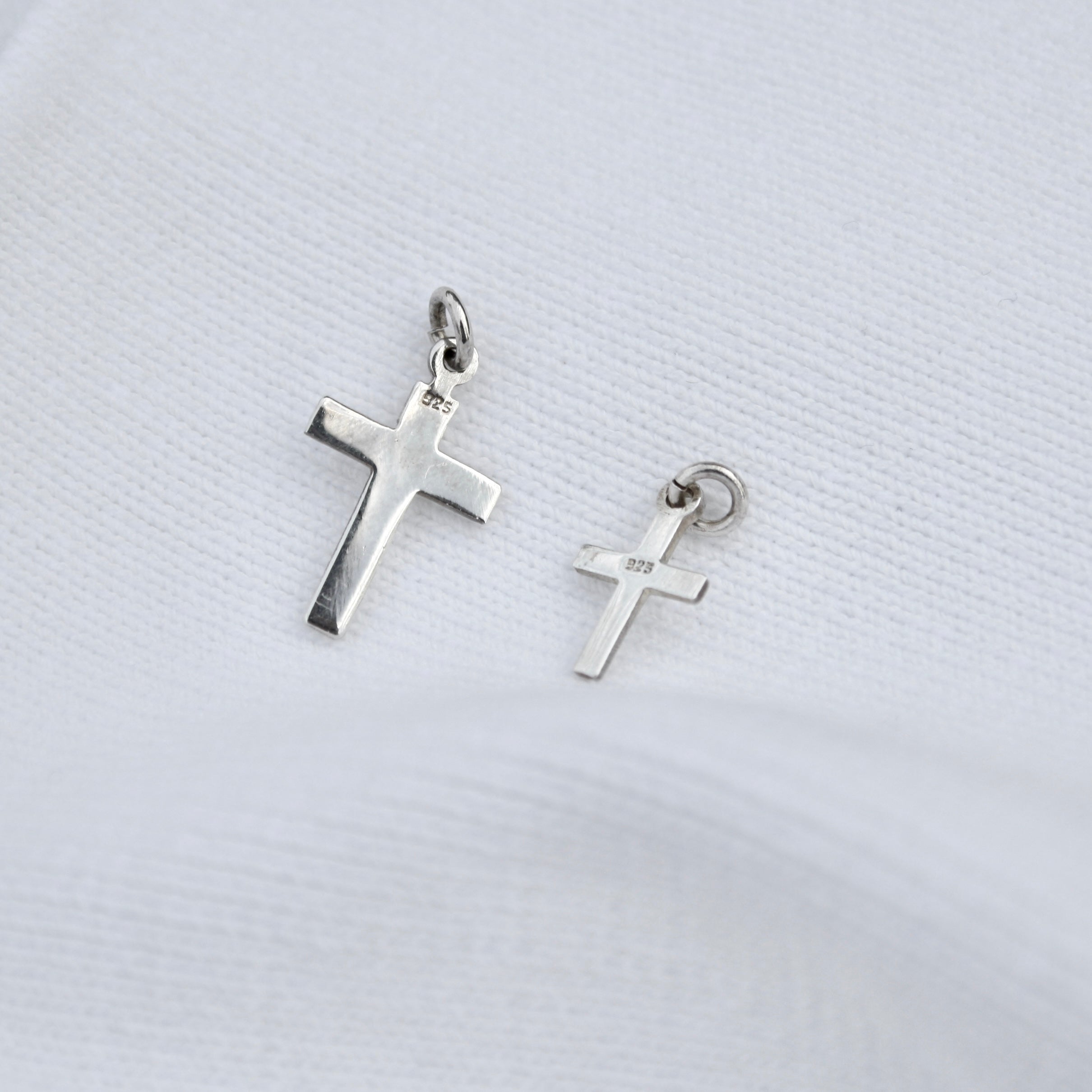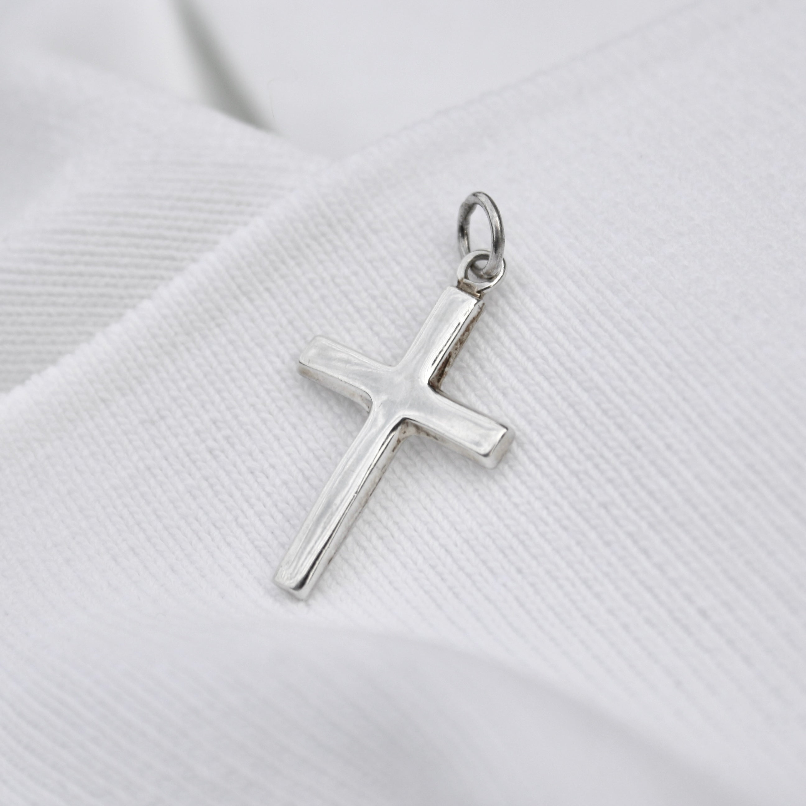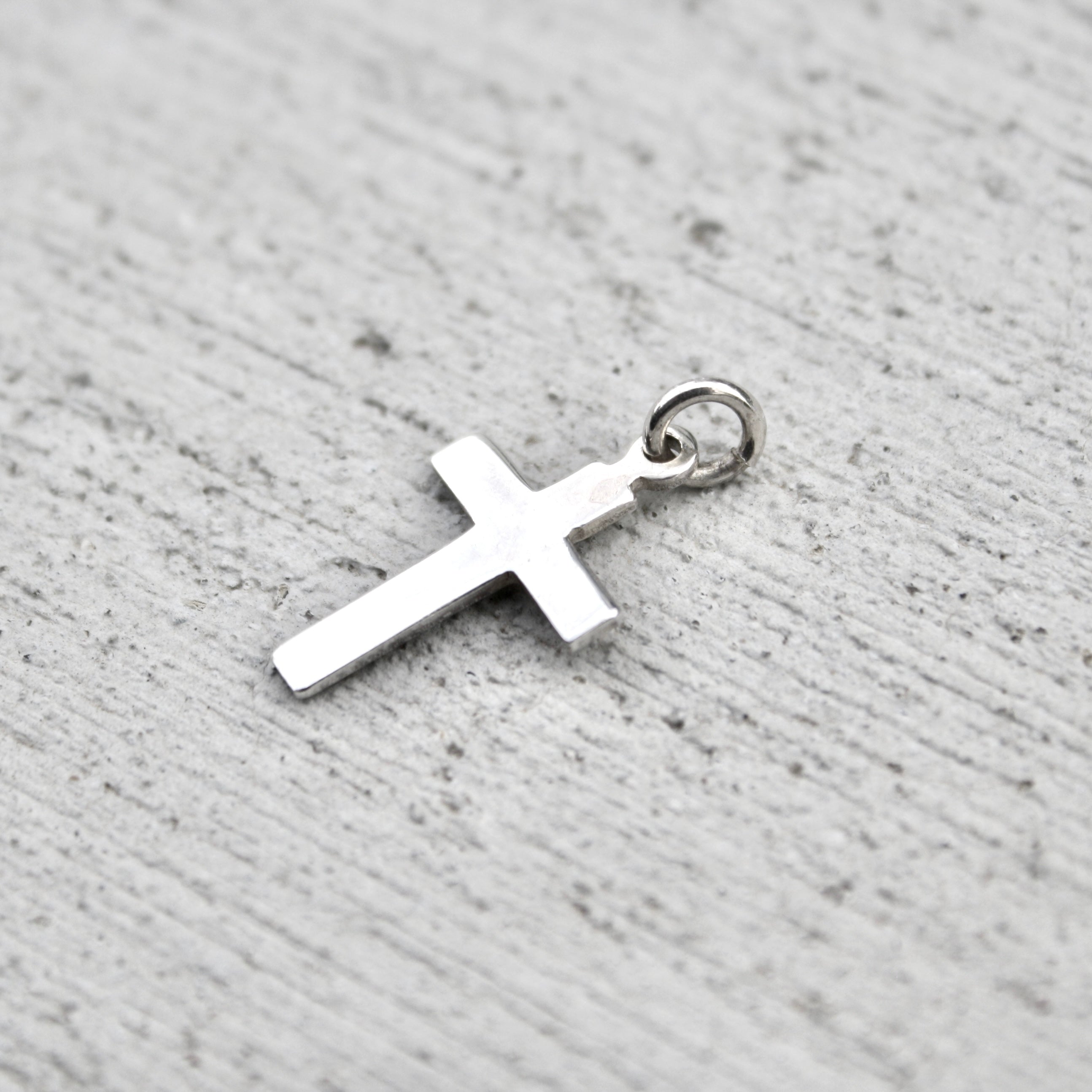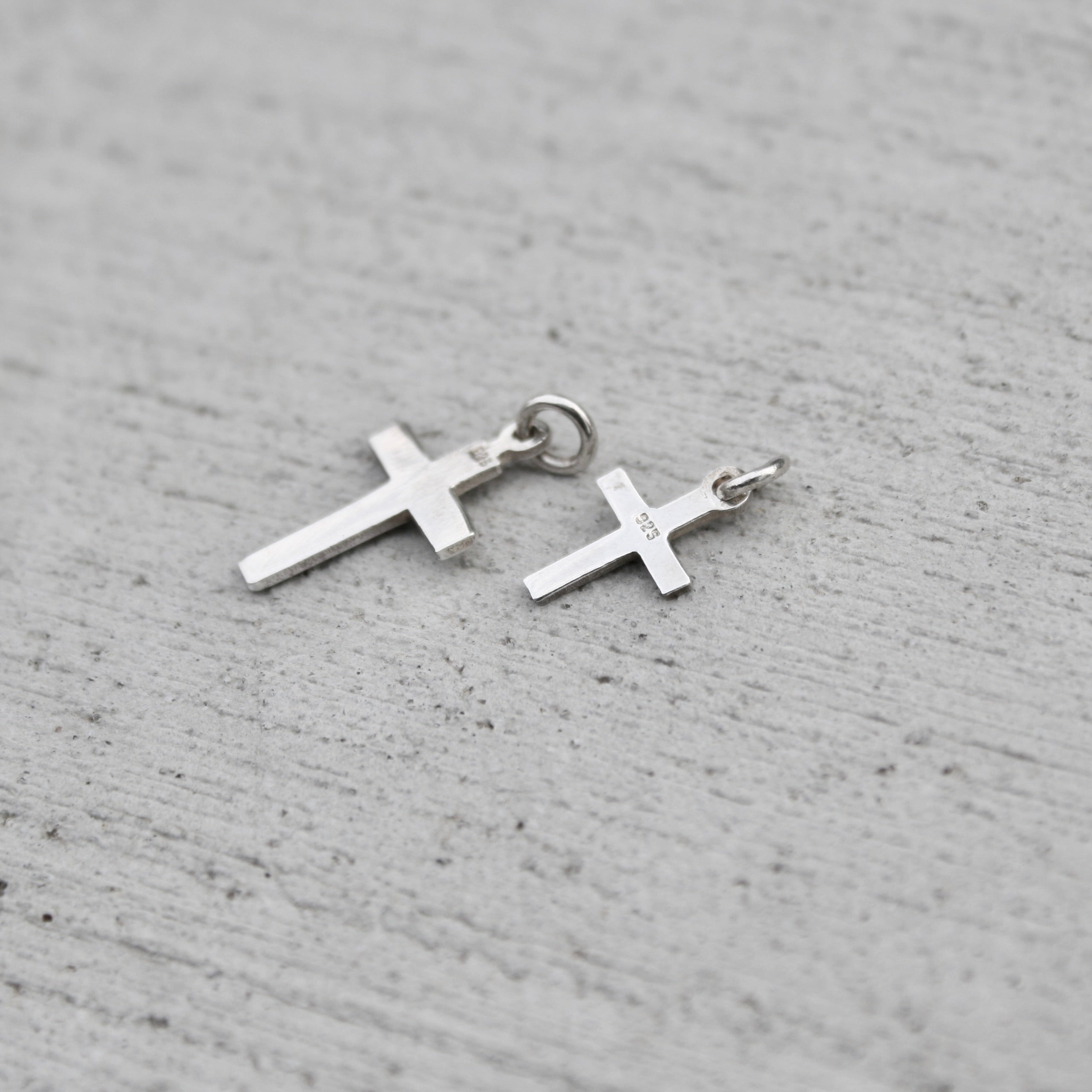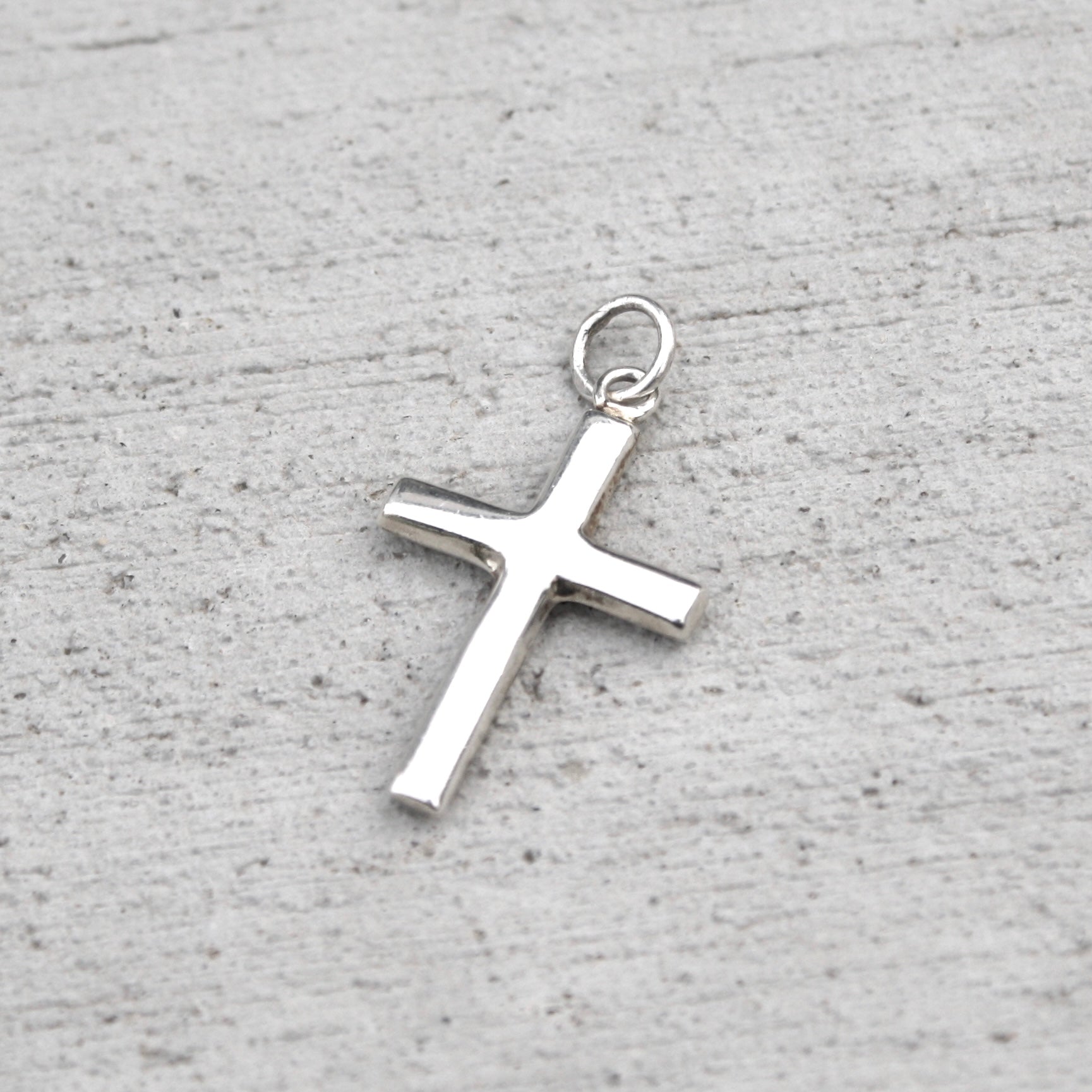 A sleek cross perfect for everyday wear. Made of 925 Italian sterling silver with a hoop for seamless attachment to existing or new chains.