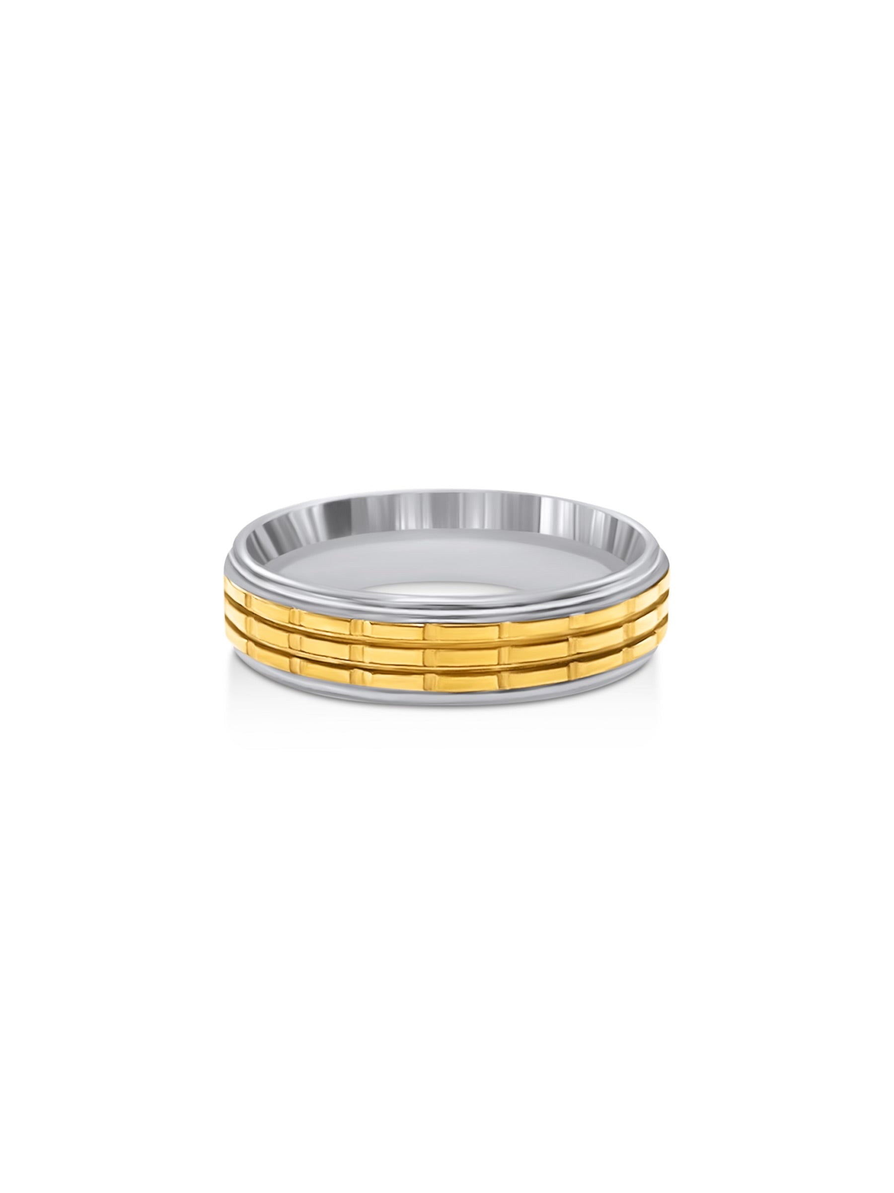 Sleek and sophisticated, the Golden Grid Ring adds a touch of contemporary elegance to any look. Made from a combination of gold and stainless steel, this ring features a unique grid texture design. Stand out in style with this modern and timeless piece.