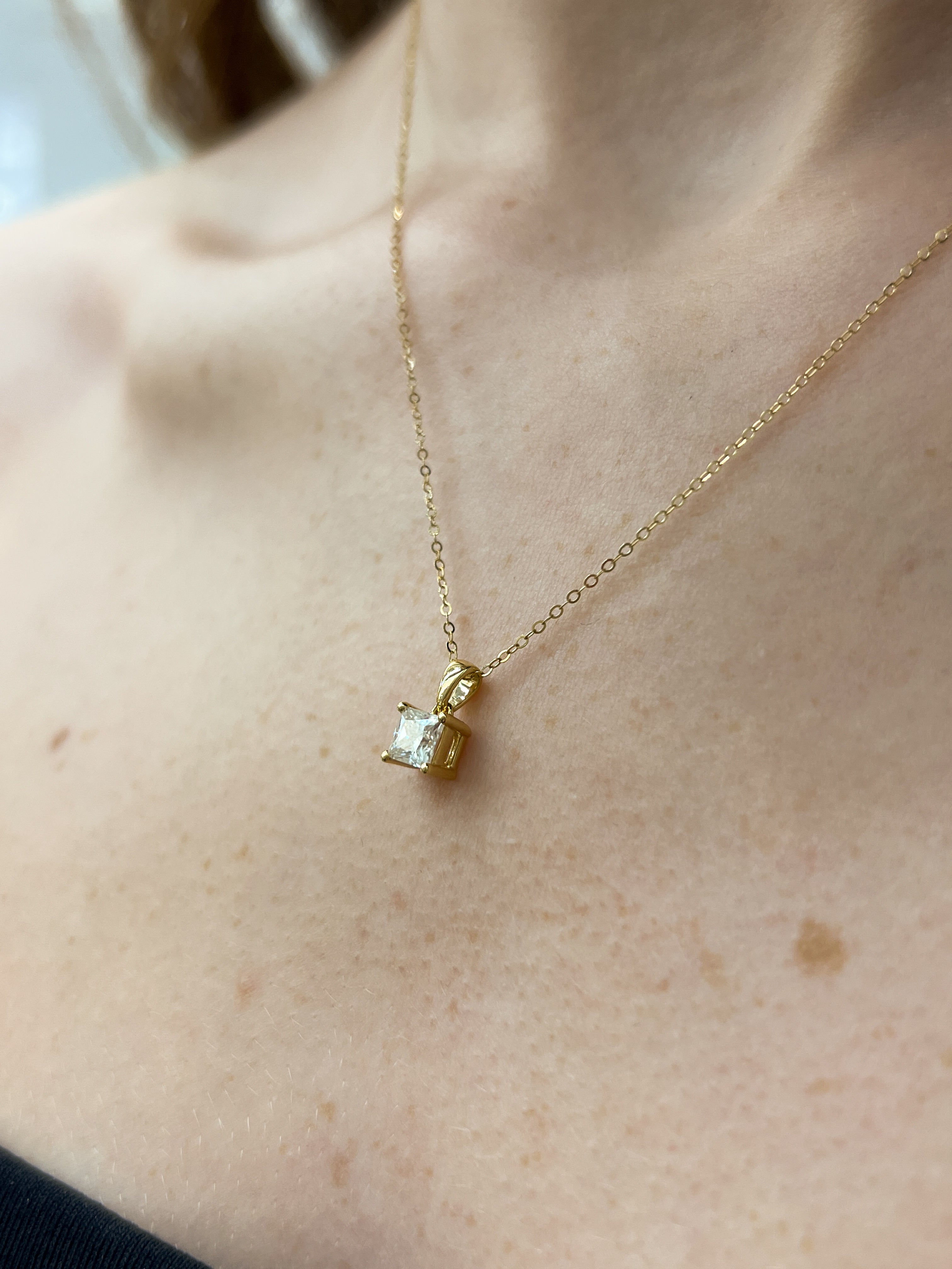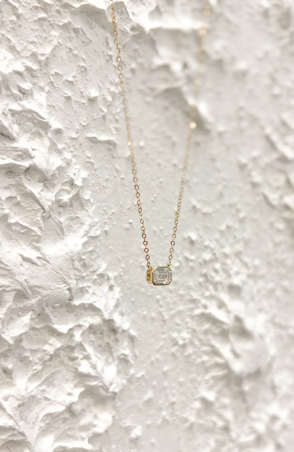 Bezel Emerald Cut 0.5ct Moissanite Solid Gold Necklace