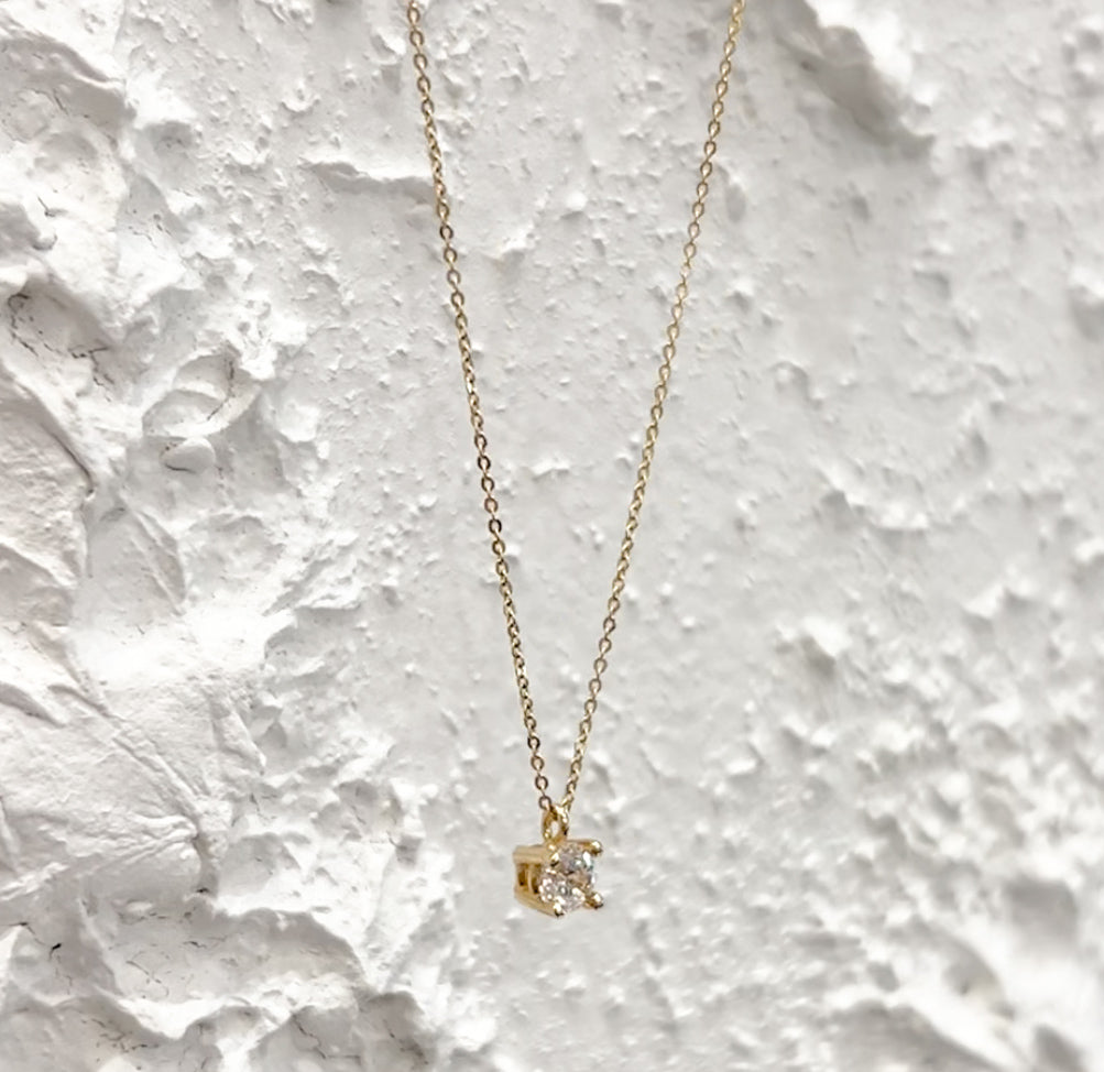 Mini Round Cut 0.5ct Natural Moissanite Solid Gold Necklace