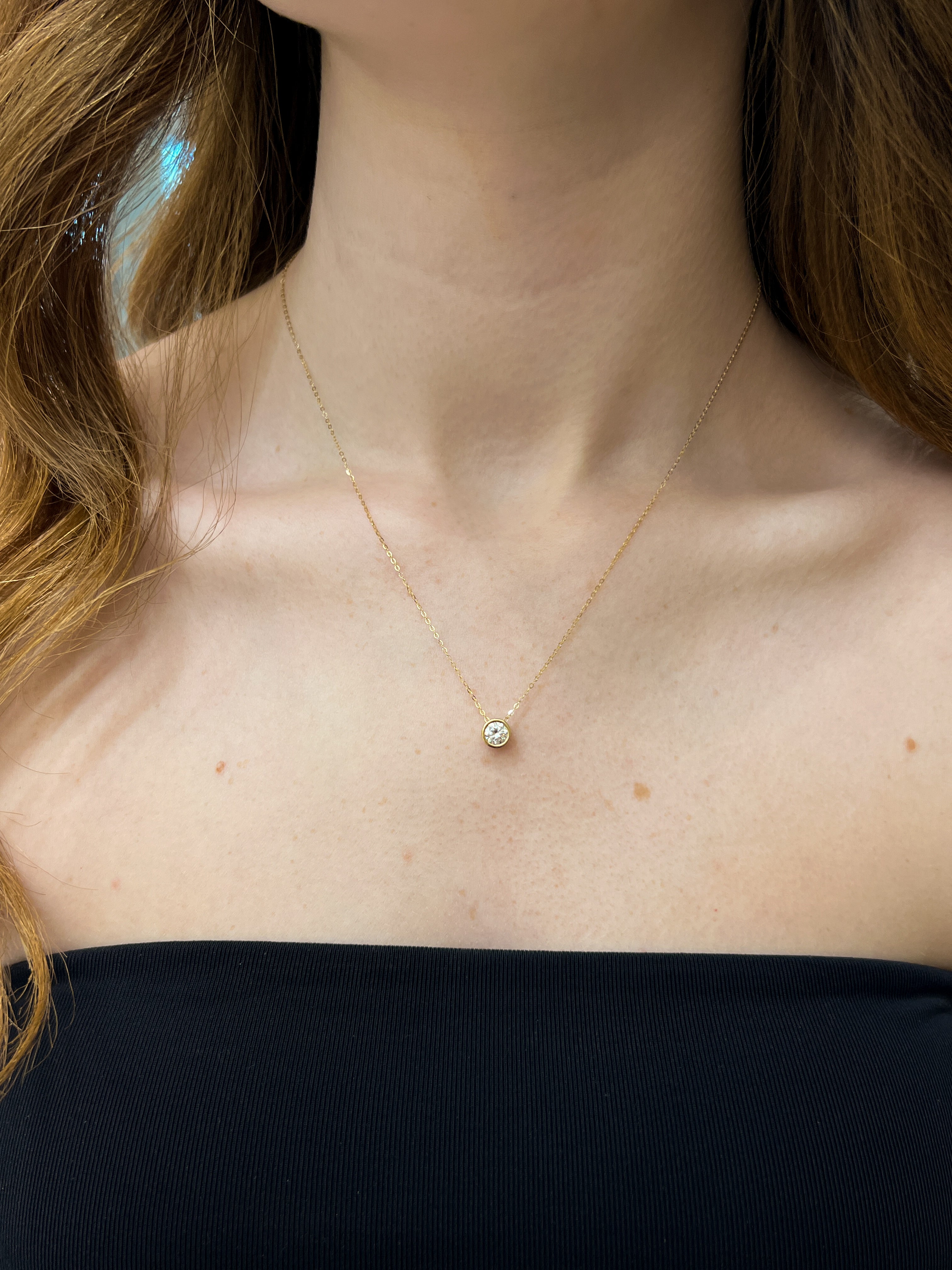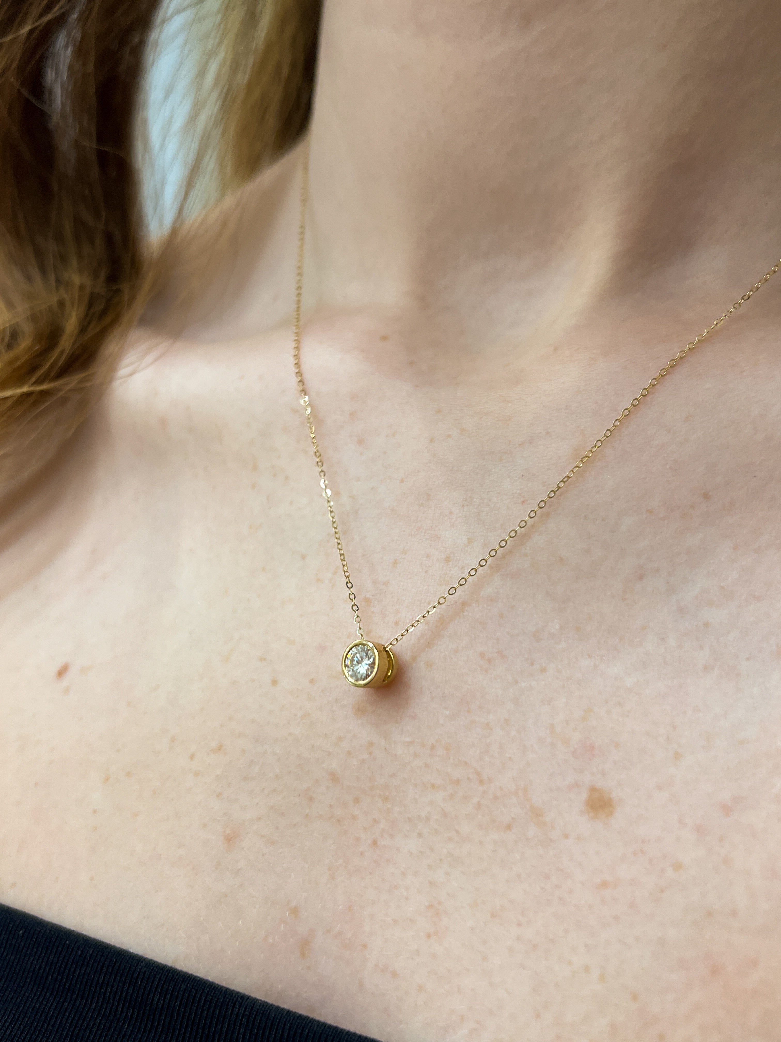 Round Bezel 0.5ct Natural Moissanite Solid Gold Necklace