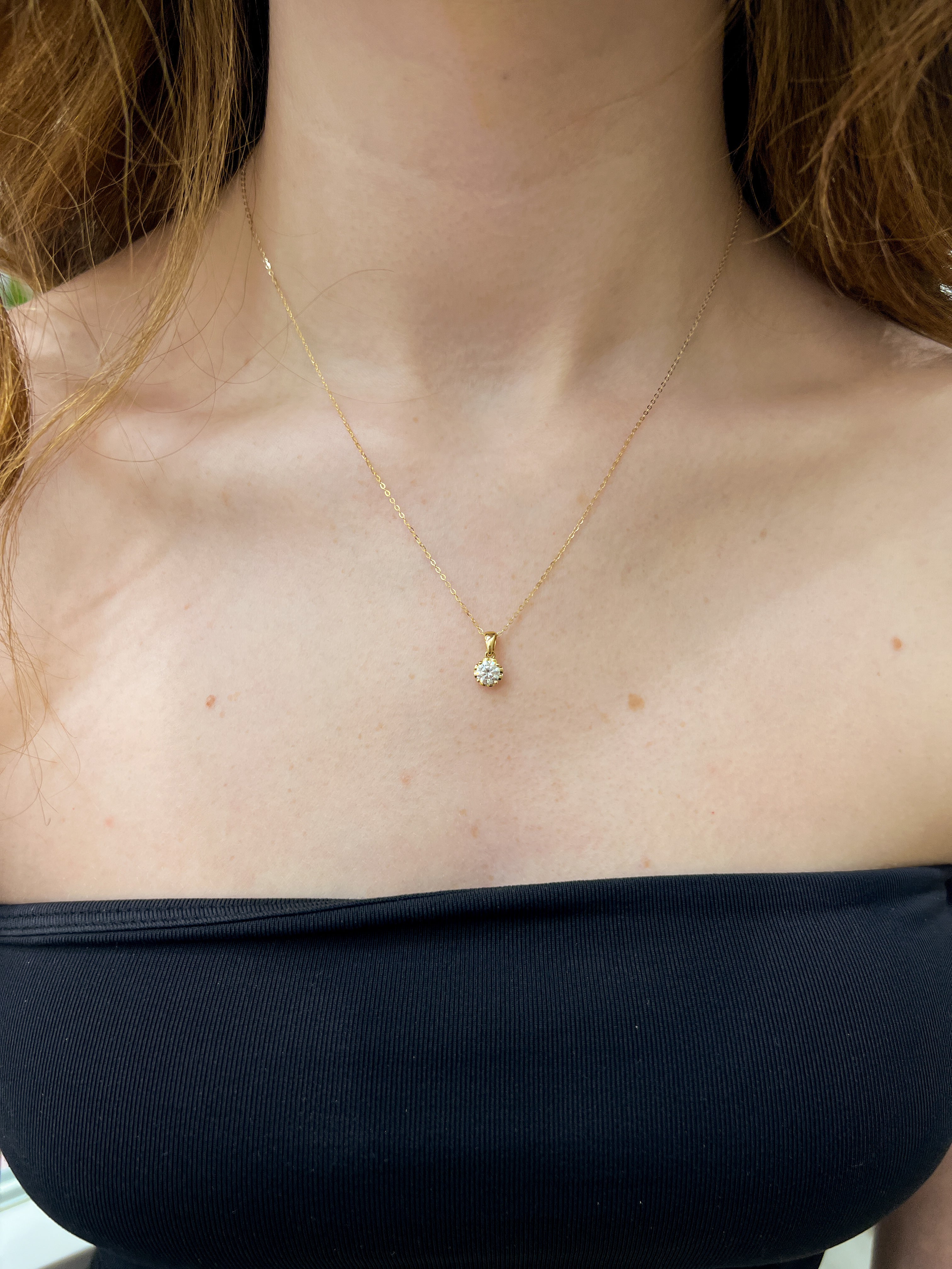 Round Flower 0.5 ct Natural Moissanite Solid Gold Necklace