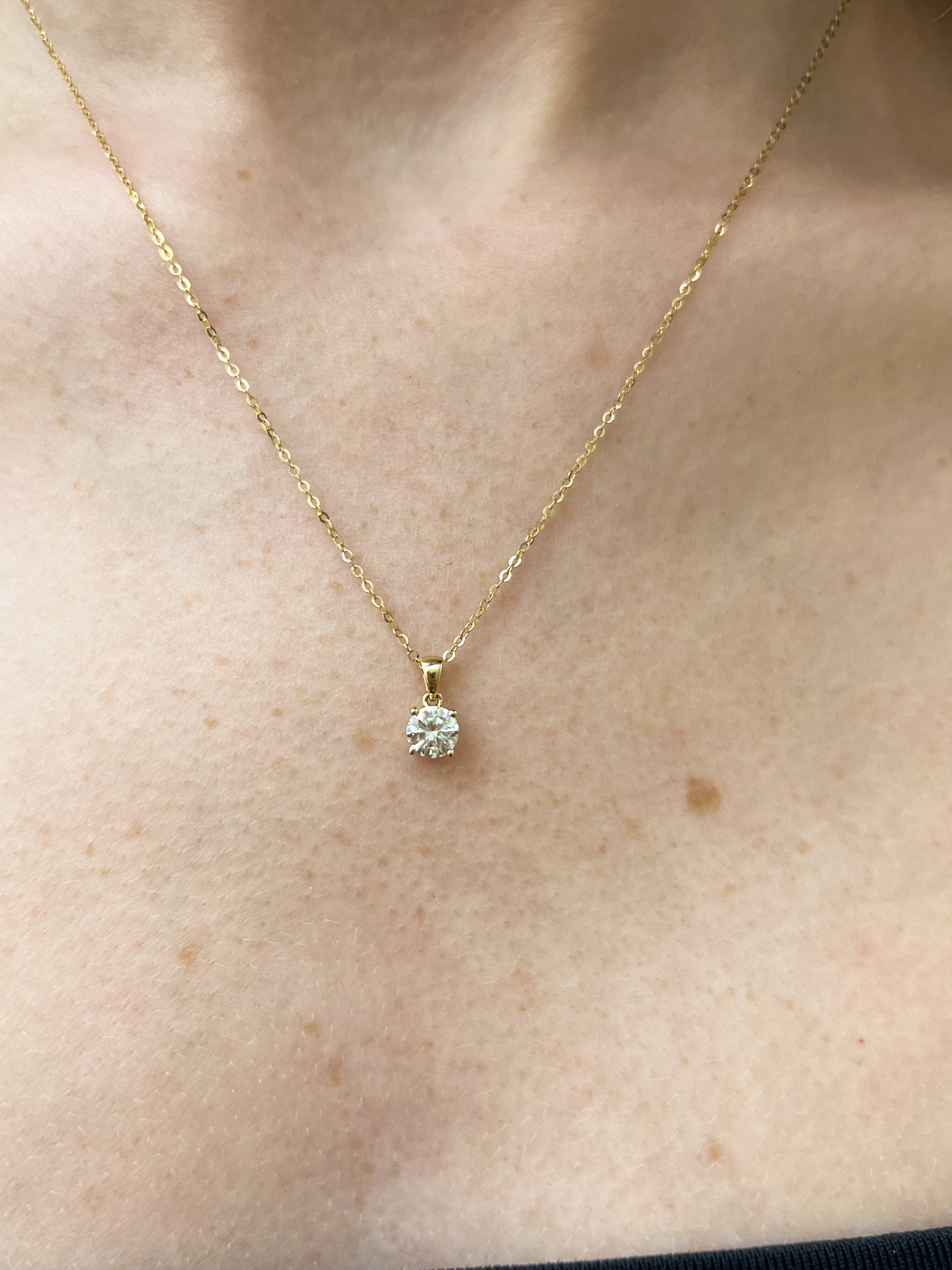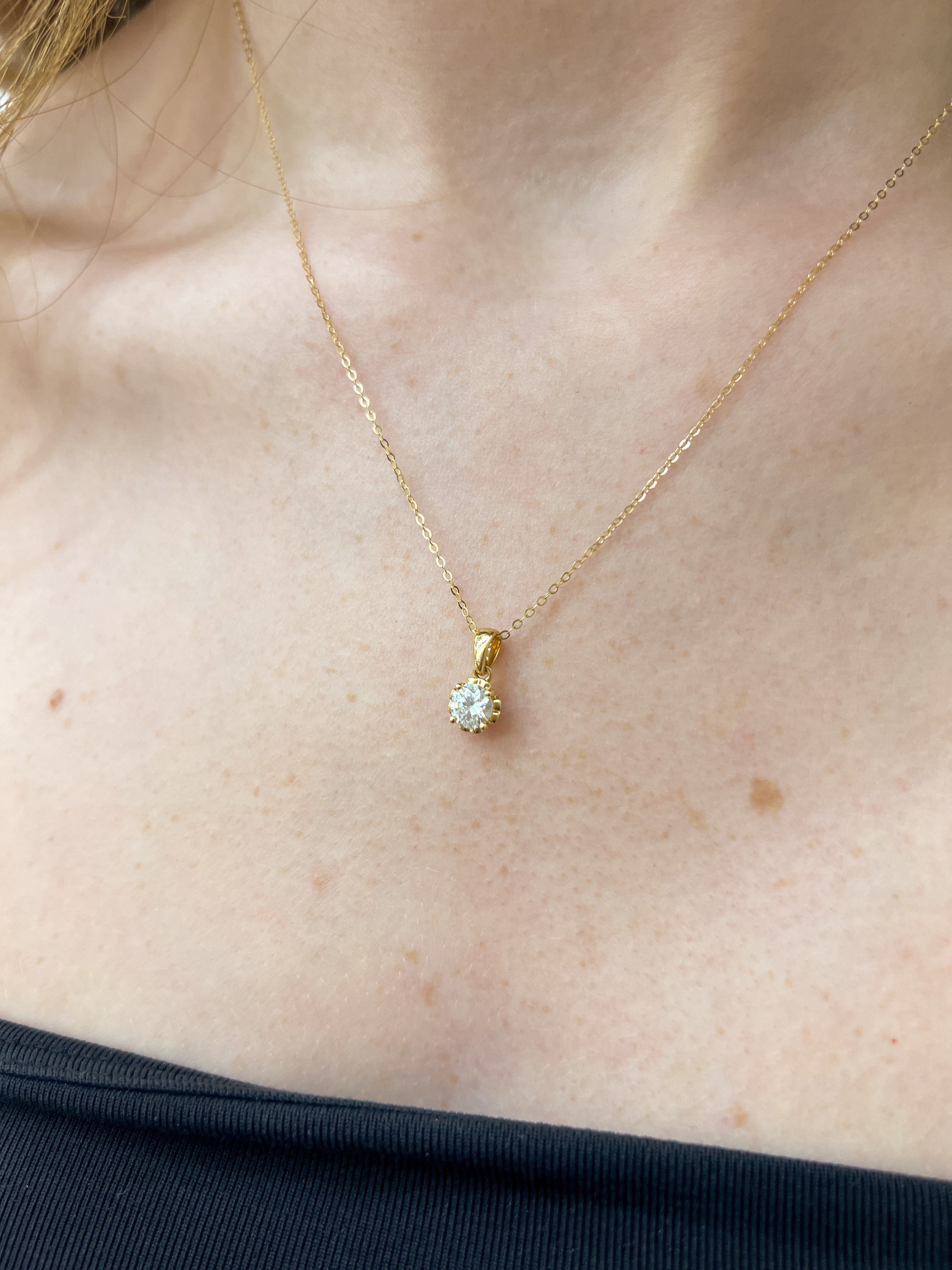 Round Cut 0.5ct Natural Moissanite Solid Gold Necklace