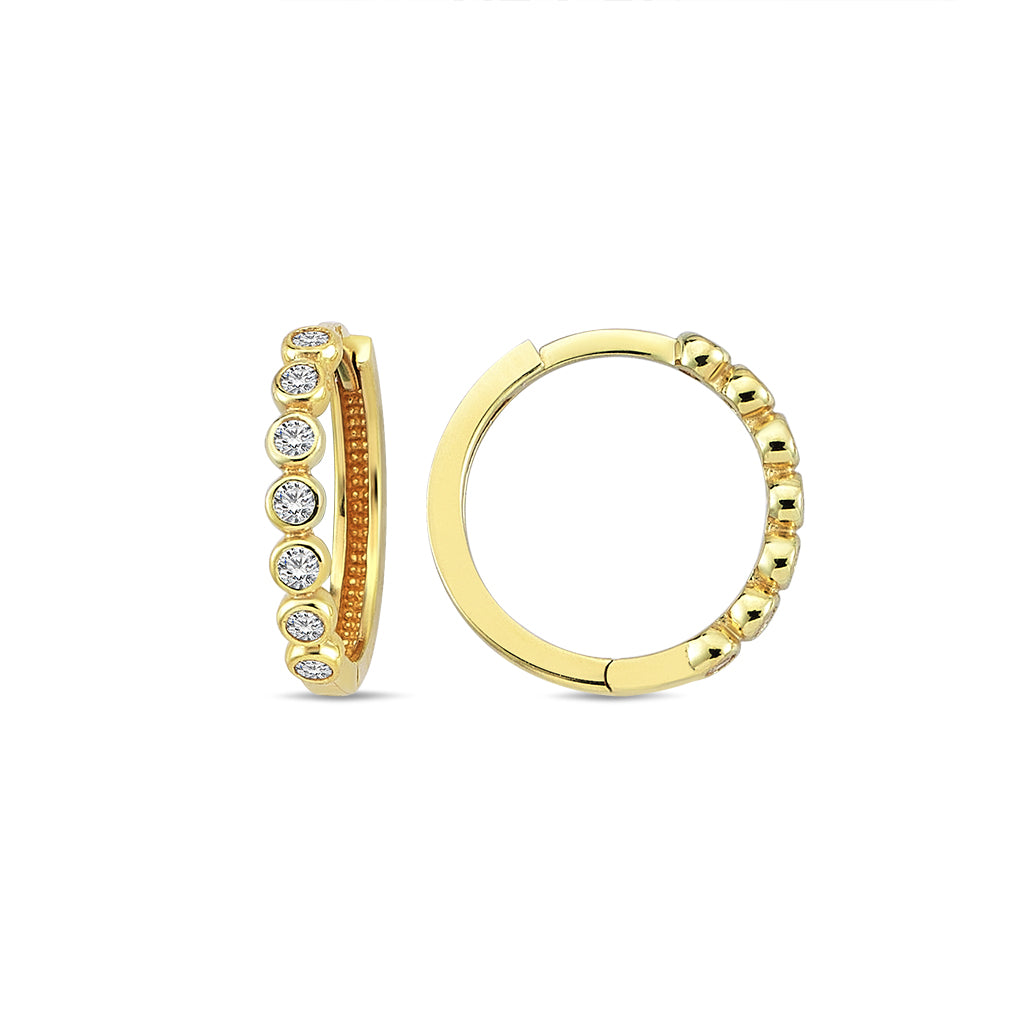Crafted from 14K solid gold, these hoops feature a striking bezel-set crystal that catches light beautifully while delivering a smooth, comfortable wear. The secure bezel design protects the stone and ensures lasting elegance through everyday moments and special occasions alike.