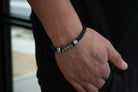 Expertly crafted with a Roman inspired design, this bracelet boasts a unique spinning mechanism for added intrigue. Made with high-quality stainless steel and 18K gold, it exudes sophistication and durability. Finished with genuine leather, it's a perfect blend of ancient charm and modern style.