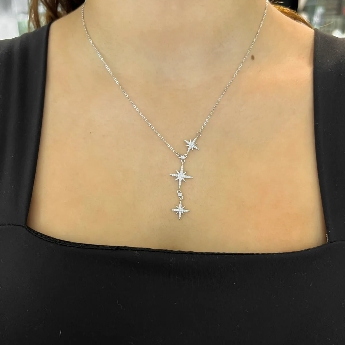Shine bright with the iconic star trinity necklace. Three gleaming stars grace a dainty sterling silver chain, adding a touch of celestial magic to your look. Radiate elegance with this captivating piece, where each star symbolizes individuality and unity under the vast night sky. Crafted with quality zircon crystals and 92.5% Italian sterling silver.
